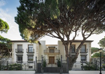 Importante vivienda cuyo propietario, profesional del sector, tuvo una importante participación. La fachada de acceso adquiere un carácter urbano con dos plantas de altura, mientras que al interior, donde se unen el mejor soleamiento y magníficas vistas, las estancias vivideras se relajan en su geometría tomando posesión del terreno a su alrededor.